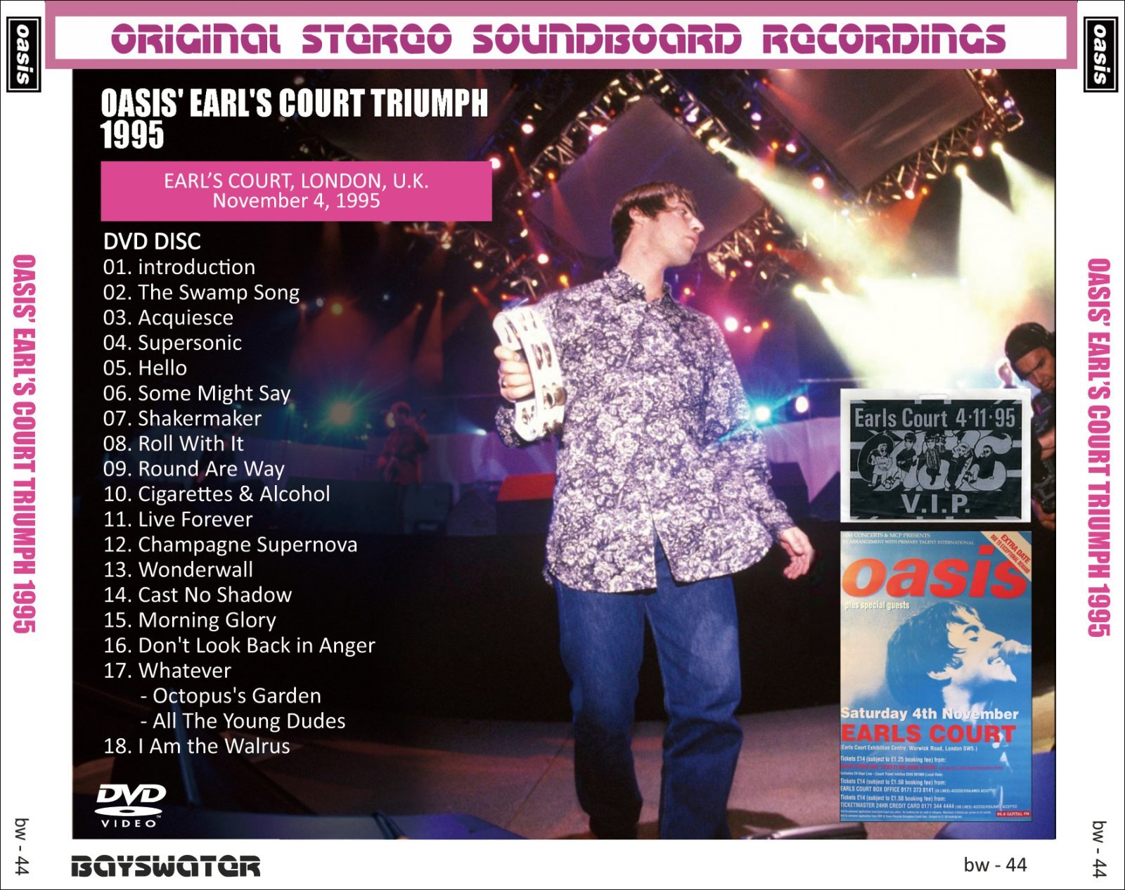 オアシスのセカンド・アルバム『(What's the Story) Morning Glory?』に伴うツアーは、1995年から1996年にかけて、欧州、北米はもちろん、日本公演を含む大規模なものであった。このツアーにおいては、メインロードやネブワースなど、オアシスの歴史を語る上で名演と呼ばれるランドマーク的なコンサートが排出されたことでも知られる。そして本作に収録のアールズ・コート公演もまた、オアシス史上において欠かすことの出来ないコンサートであることに異論がなかろう。1995年11月4日と5日、この二日間、ロンドンはアールズ・コートにて2夜連続公演が行なわれた、本作はその二日間をサウンドボードで収録。さらに初日11月4日をプロショット映像で収録しているセットである。美しいピクチャー・ディスク仕様の永久保存がっちりプレス盤。スリップケース付。