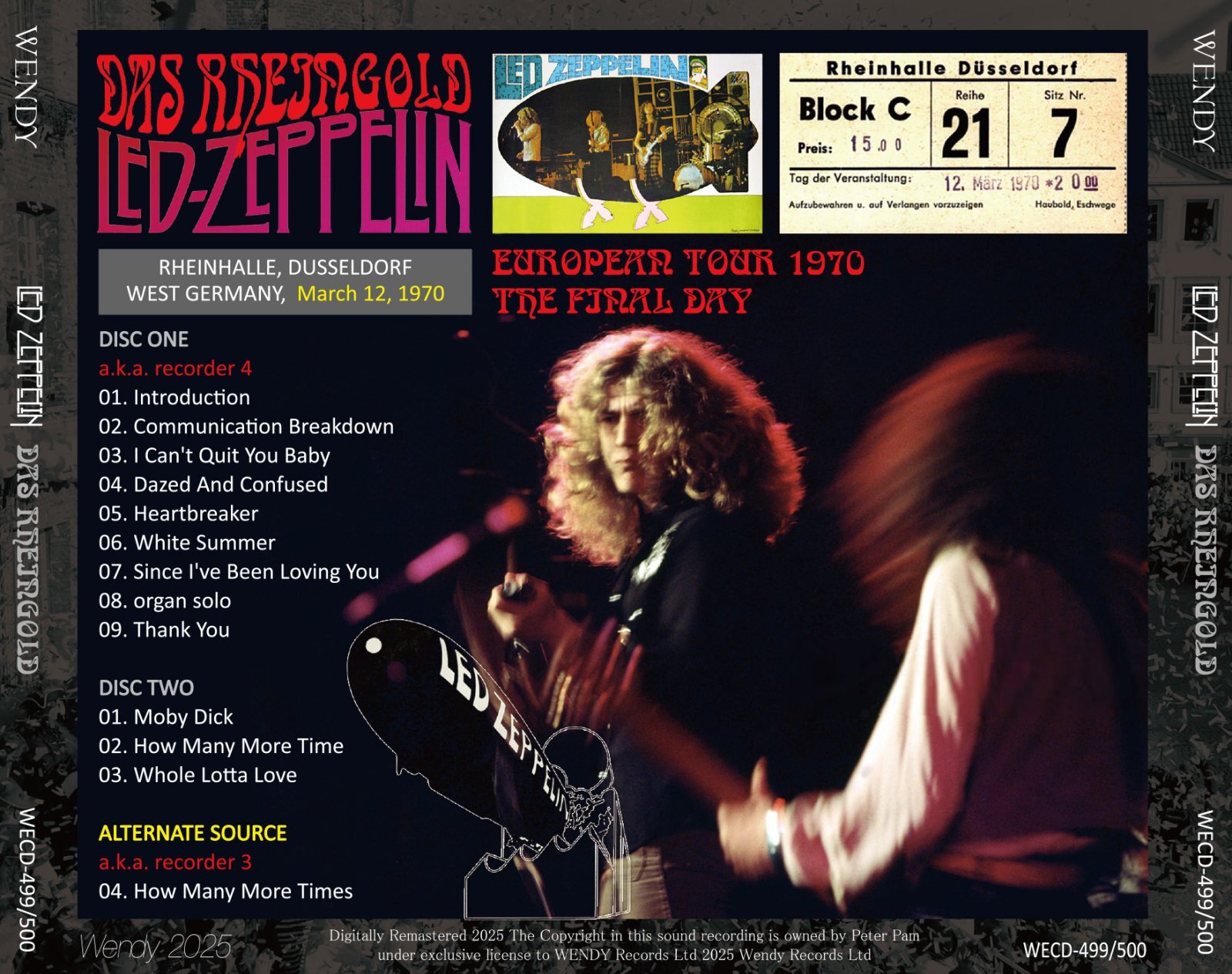 1970年3月12日デュッセルドルフはラインホール公演を完全収録。「Communicaton Breakdown」で開幕するセットリスト。「Dazed And Confused」と「Moby Dick」の僅かなカット部分は別ソース補完。さらに「How Many More Times」のメインソースには5分弱のカットがあったが、こちらも別ソース補完。ディスク2の最後にその補完に使用された別ソースによる「How Many More Times」を単一ソースカット無しという意味で収録している。美しいピクチャー・ディスク仕様の永久保存がっちりプレス盤。