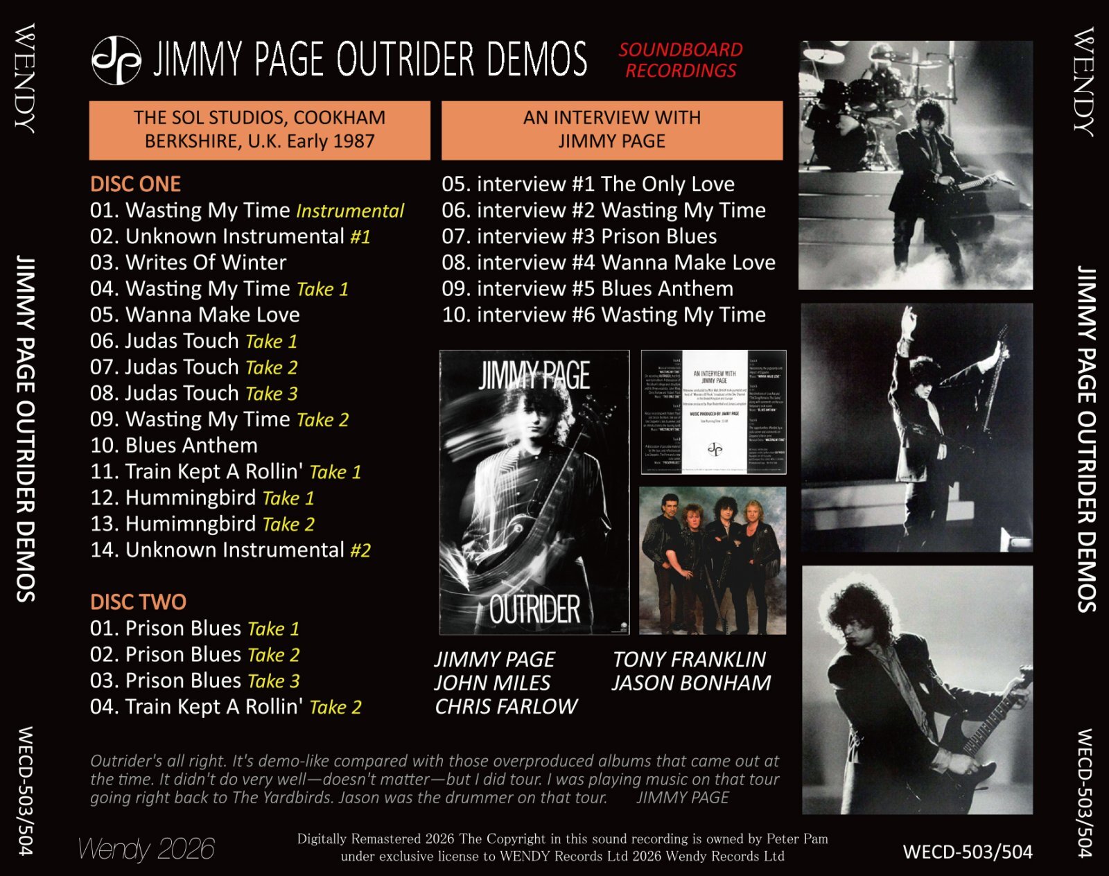 1987年初頭に行われた「OUTRIDER」のセッションを収録。初登場音源にして高音質サウンドボード収録という、ファンにとってはたまらないタイトルであろう。また「OUTRIDER」のプロモのみに収録されていた「An Interview With Jimmy Page」を併録。美しいピクチャー・ディスク仕様の永久保存がっちりプレス盤。