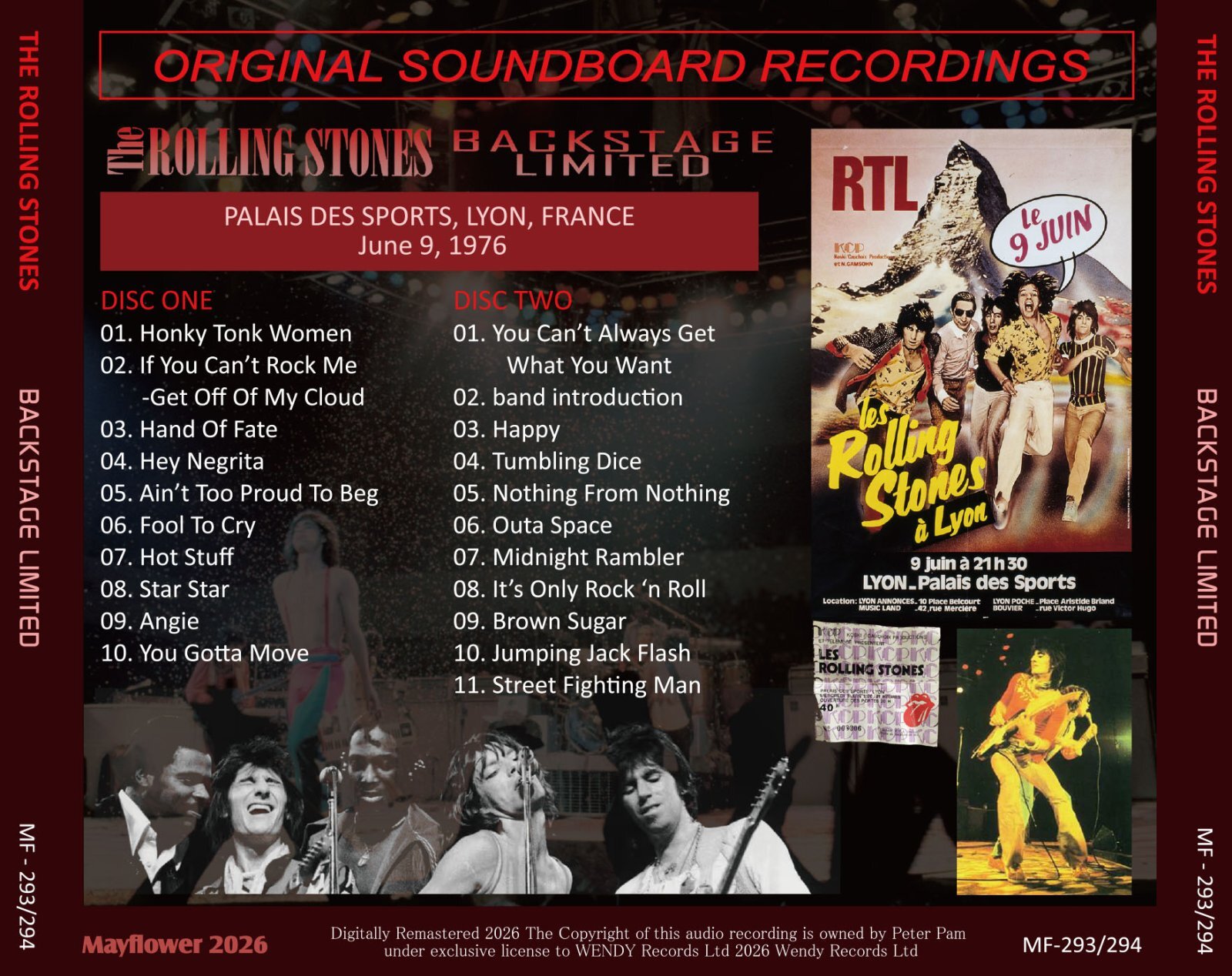 1976年6月9日フランスはリヨン公演をサウンドボードで収録。サウンドボード音源で欠落していた「Honky Tonk Women」の冒頭、「Jumpin' Jack Flash」の後半、そして「Street Fighting Man」などは、全て高音質オーディエンス録音で補完。コンサート完全収録となっている。美しいピクチャー・ディスク仕様の永久保存がっちりプレス盤。