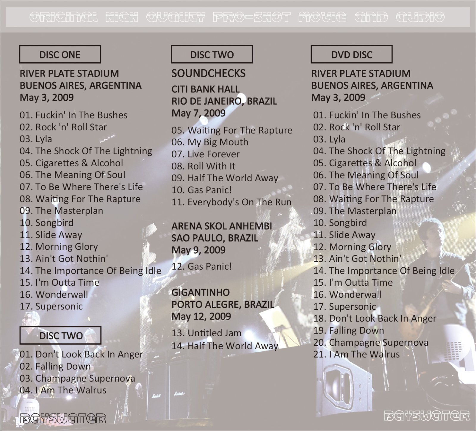 2009年5月3日アルゼンチン公演をサウンドボードとプロショットで、それぞれ完全収録。ノエルいわく「初めてここに来たのは、1989年INSPIRAL CARPETSというバンドのローディだった時だ。その俺が、20年後にここで演奏できるなんて光栄だ。今夜は特別な夜だ」。ボーナストラックでは同ツアーの南米公演よりサウンドチェック音源を収録。美しいピクチャー・ディスク仕様の永久保存がっちりプレス盤。スリーブケースに入ったパタンパタンのデジパック仕様。